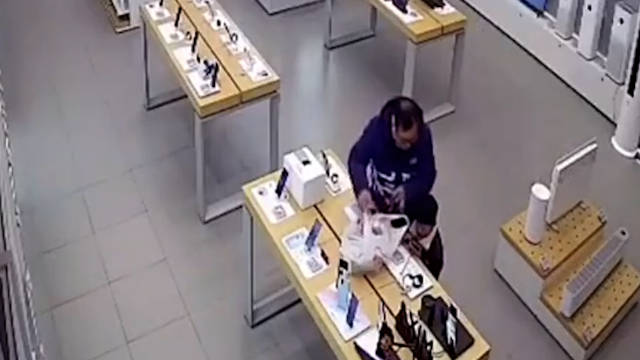 一男子手把手教5岁儿子偷手机