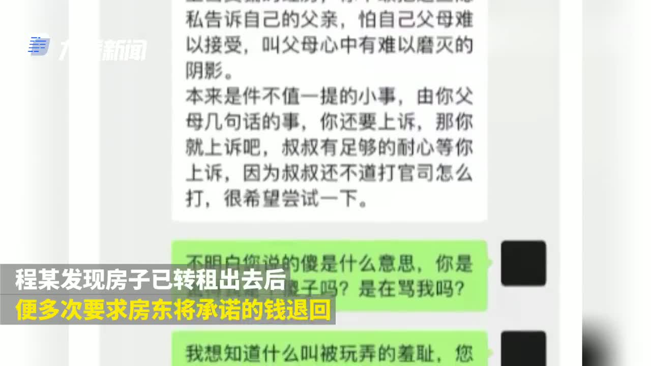 据悉,11月10日,女生和房东开始协商退房事宜,随后房子转租成功,女生要求房东退回押金,可遭遇房东的故意拖延、推脱。女生声称要到法院起诉,房东遂被激怒骂女生“被人玩弄”。