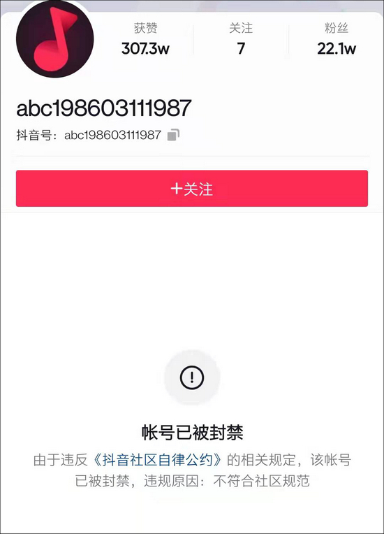 目前,“小妞日常”的抖音账号已经被封禁。