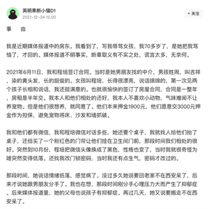 我是近期媒体报道中的房东。我看到了,写我辱骂女孩,我70多岁了,是她把我骂恼了,才回的。媒体报道不明事实,断章取义有不实之处,谎言太多,无奈何。