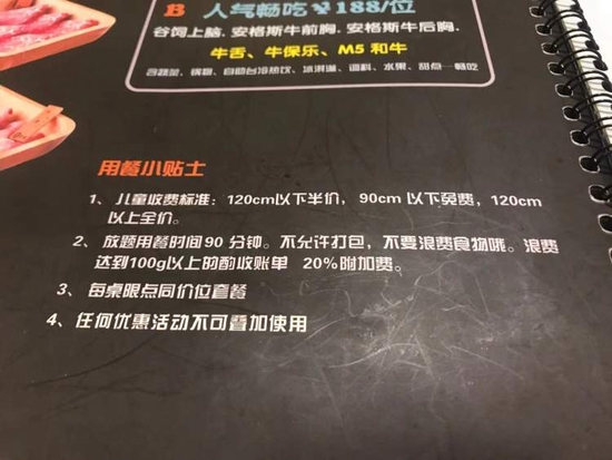 尊牛汇和牛自助火锅魔都旗舰店也有类似规定。