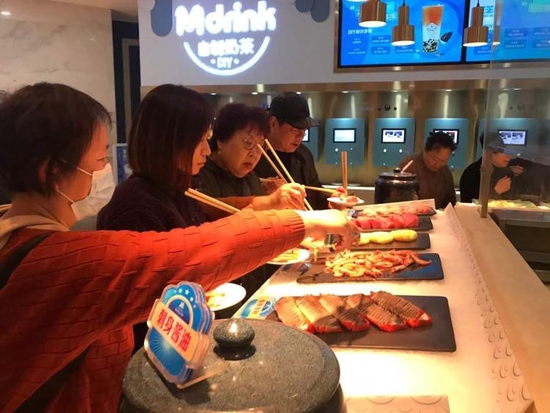 一家三口前来就餐的许先生表示,作为这家店的常客,对自家人的食量也很心里有数,“没有那种要回本、要吃得多的念头,主要是人要吃的舒服,和其他餐厅相比,自助餐的优势在于选择多、更自由,而不是更划算。”