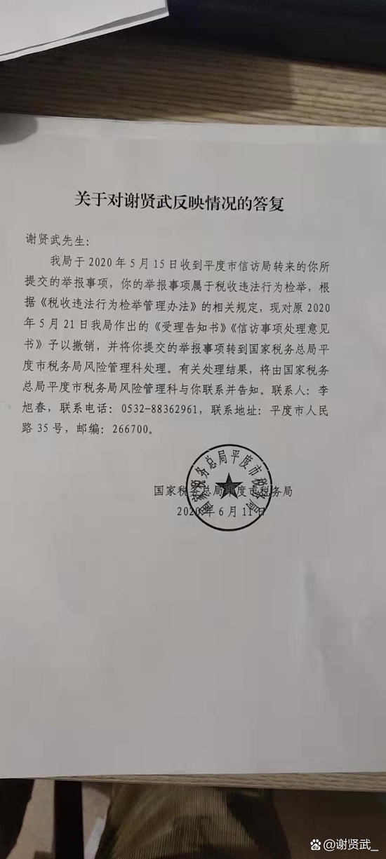而且,作为当事人,我现在最关心的不是相关领导给我们道歉,而是我反映的相关公司涉嫌偷税漏税的问题有没有得到彻查、问题有没有解决!国家税法的尊严有没有得到维护!然而到现在,税务部门也没有给我书面调查结果!希望他们尽快出具书面调查结果!