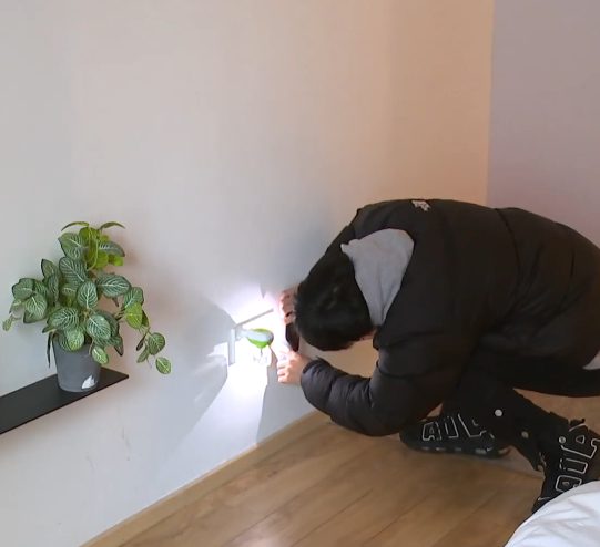 发现情况不对劲,小叶赶紧在房间里进行排查,结果在正对着床的墙上插座上发现有个摄像头。“我们拿着闪光灯照它的时候,它跟镜面一样会反光,这个位置正好对着床。”