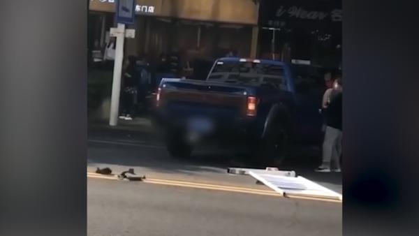 一段事发现场的视频显示,一辆蓝色皮卡车在道路行驶时,突然冲撞路段中央的分割围栏,先后碰撞多辆车,有群众被撞后倒在地面上,路旁多人围观。