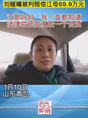 1月10日,江歌母亲江秋莲诉刘暖曦案一审宣判。法院判决刘暖曦赔偿江秋莲各项经济损失496000元及精神损害抚慰金200000元,并承担全部案件受理费。