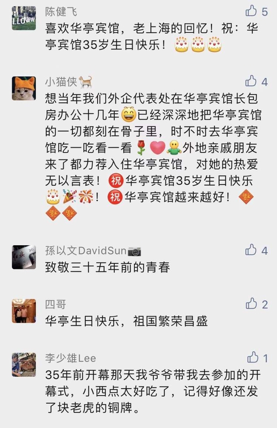 华亭宾馆也承载了不少老上海的回忆。有网友表示,35年前还是爷爷带自己去参加的开幕式,“小西点太好吃了”。更有网友表示,已经深深把华亭宾馆刻在骨子里,外地亲戚朋友来了都力荐入住华亭。