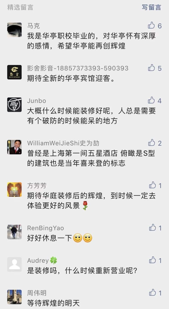 对于此次华亭宣布歇业的消息,不少网友纷纷表达了不舍的情绪。同时,也纷纷为华亭献上祝福,期待它能早日归来,明天更辉煌!
