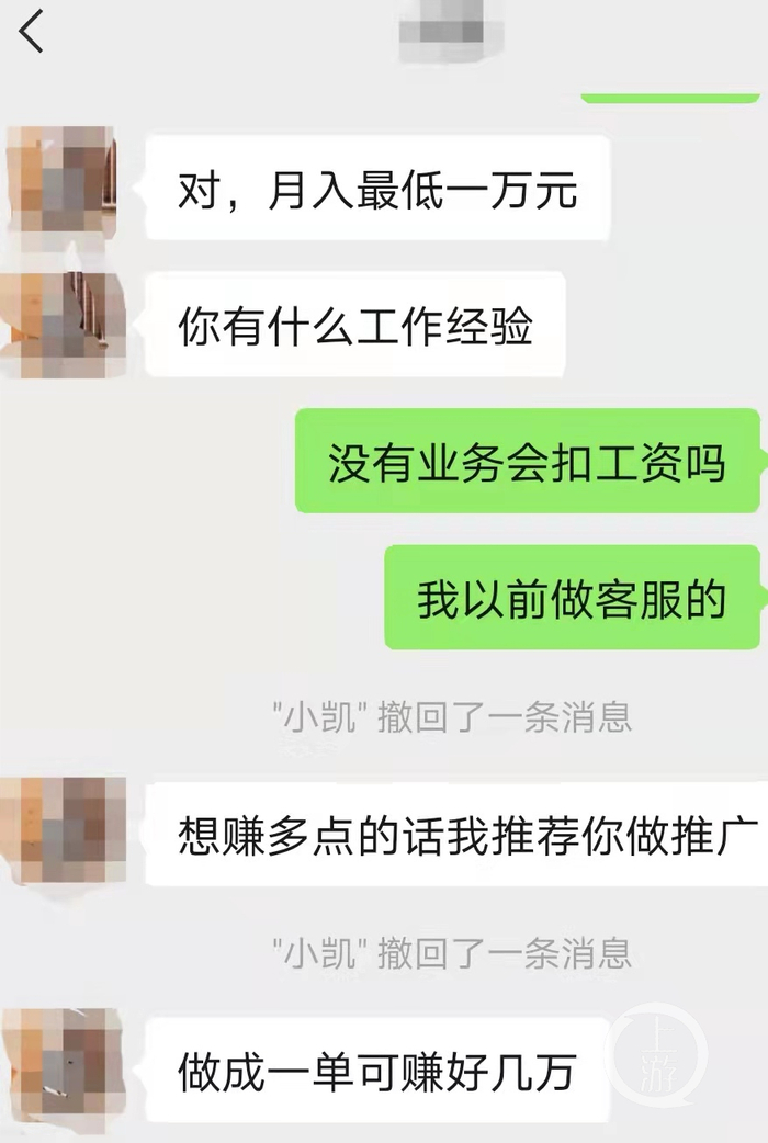 对方表示,他们是做线上博弈的,月工资一万人民币起跳,还要加提成。“做成一单可以赚几万。”