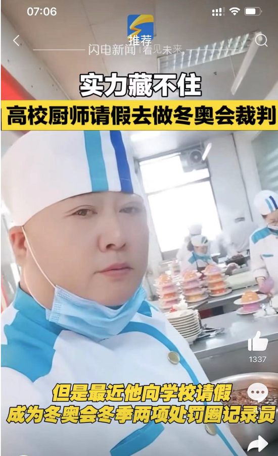据中国石油大学(华东)微博消息,他们有个食堂大厨明志祥,最近请假去冬奥会当技术官员了。