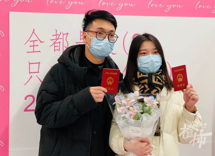 早上8点,在杭州萧山区婚姻登记处,李益和毛晶晶从颁证师手中接过“红本本”,完成了自己人身中的婚姻大事。因为预约不上号,两人从凌晨一点就赶来,在车里度过了一个晚上。