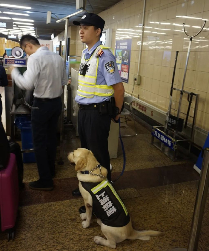 “生米”今年已经11岁了,差不多等同人类的77岁。作为一条搜爆犬,它在上海轨交警犬队已经服役了整整10年。“生米”参加过数十次大大小小的安保任务,工作过的地点不仅仅在地铁站,在进博会的场馆里、“上马”的赛道上、旅游节的花车里,都曾留下过它认真工作的身影,甚至还坐过飞机去外省市参加增援任务,是我终生难忘的“好战友”、“好搭档”。