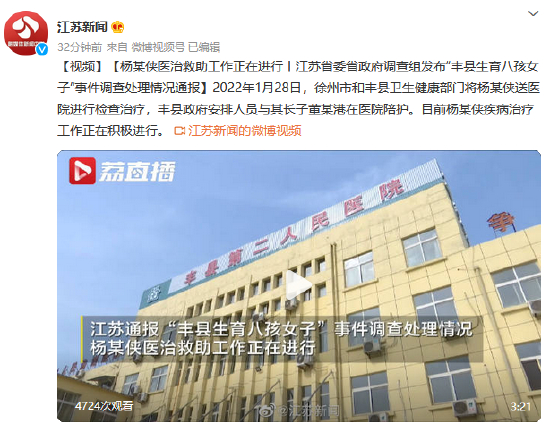 原标题:杨某侠医治救助工作正在进行丨江苏省委省政府调查组发布“丰县生育八孩女子”事件调查处理情况通报