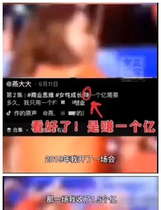 2021年10月14日,相关执法人员在抖音平台调取了陈晓燕(抖音号:Y33861510)宣传视频的截图证据。视频称:“赚一个亿需要多久?一晚上就够,2019(年)我开了一场会,那一场我收了1.5个亿,你知道我为了这1个多亿,我付出了多少吗?”