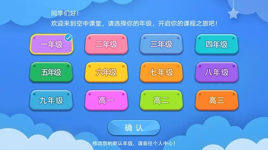 先选择学生目前所在年级。完成选择后,就会进入相对应的年级首页。