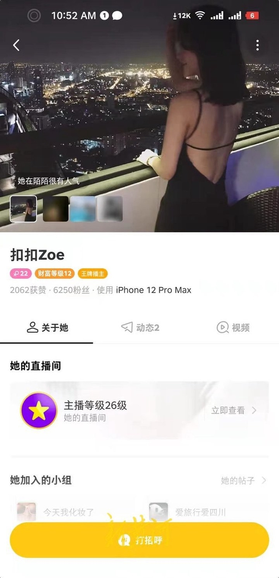 那是陌陌平台的一位人气女主播,网名叫“扣扣ZOE”,凭借清纯的外表和动人的歌声,入驻平台一年多时间收获6000多名粉丝,主播等级达到26级。“单纯不做作,从来没有过的感觉。”为了赢得对方的关注,袁伟志先是刷了两千多元的礼物。过了一会儿,他就收到了女主播的添加微信好友申请——这是一份特殊优待,只有主播可以主动加粉丝微信。