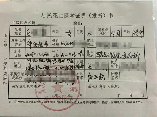 昨天,一位自称孩子家属的网友在网上公布了孩子的死亡医学证明与事件概述。