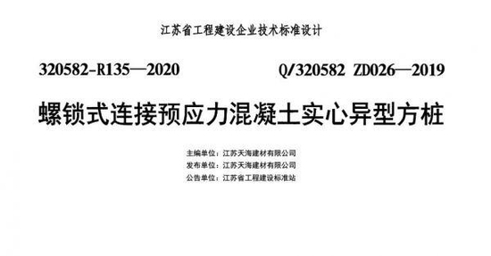 值得注意的是,异形方桩图集并非是严格意义上的“江苏省标准”。在异形方桩图集的详细资料中,记者注意到该图集主编单位和发布单位均为“江苏天海建材有限公司”。也即异形方桩为企业技术标准,并非“江苏省标准”。