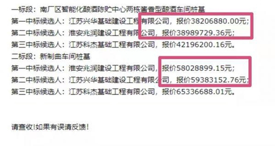近期,经济观察网获取了上述参投方对于两车间的桩基招标提出的多项质疑材料。根据知情人士提供的截图显示,所涉酱香型酿酒车间和新制曲车间的桩基工程投资额超9000万元。
