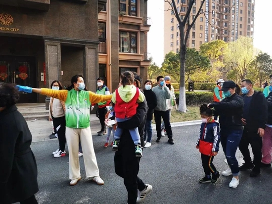 为已下楼排队的居民编组,