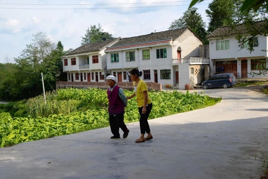 2016年8月,贵州省遵义市松林镇黄连村,何永秀陪着母亲在公路上散步,20年前她惨遭被拐卖厄运。
