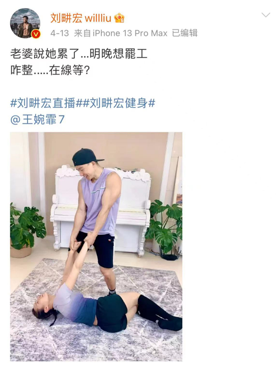 而隔天,刘畊宏干脆与妻子穿着羽绒服开启直播教学。