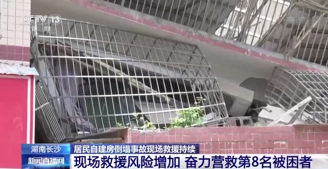 长沙居民自建房倒塌事故现场:第8名受困者获救