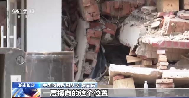 中国救援队副队长 韩文东:这里边倒塌形成的大量的梁、柱、板都是重叠,需要一层层打通多个梁、多个板到达位置,然后边掘进还要边支撑,这需要花费大量的时间。目前她的腿部埋压现在还是比较深,所以我们下一步要对被困的人员,根据营救方案,还要采取进一步的营救行动。