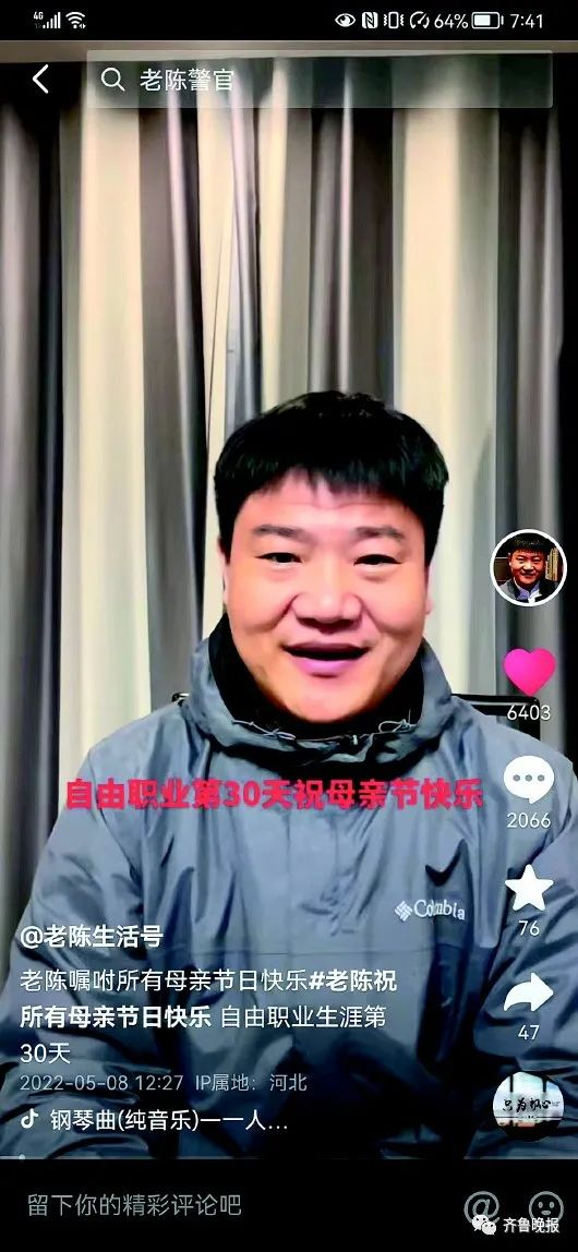 不过,今年4月8日,老陈正式从秦皇岛市公安局海港分局辞职。“主要还是因为之前流量太大,感觉在风口浪尖上,我一句话说得不合适,就会给单位造成麻烦,”老陈说,辞职之后不会带走“反诈警官老陈”的账号,自己准备以个人的身份去做公益。