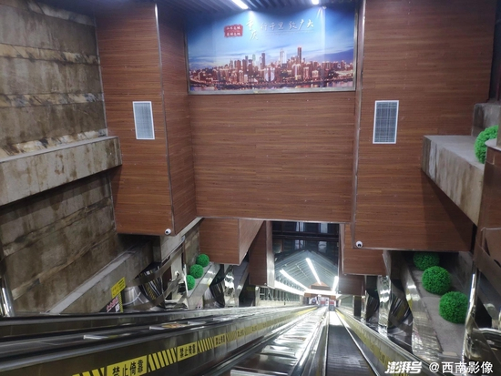 在人来人往的扶梯口,笔者看到不少行人提着行李箱、挑着货物走进这里。“皇冠大扶梯不仅利于居民的生活,还有利于当地的发展。”附近居民介绍,扶梯还未修建之前,只能乘坐两路口缆车,初期颠簸感十分强烈。