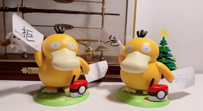 本次肯德基儿童节套餐的赠品共三款,除了可达鸭音乐盒,还有皮卡丘郊游水壶与皮卡丘八音盒。但在三款玩具当中,可达鸭音乐盒凭借呆萌属性与网友的二次创作加持,一举击败宝可梦“萌神”皮卡丘。