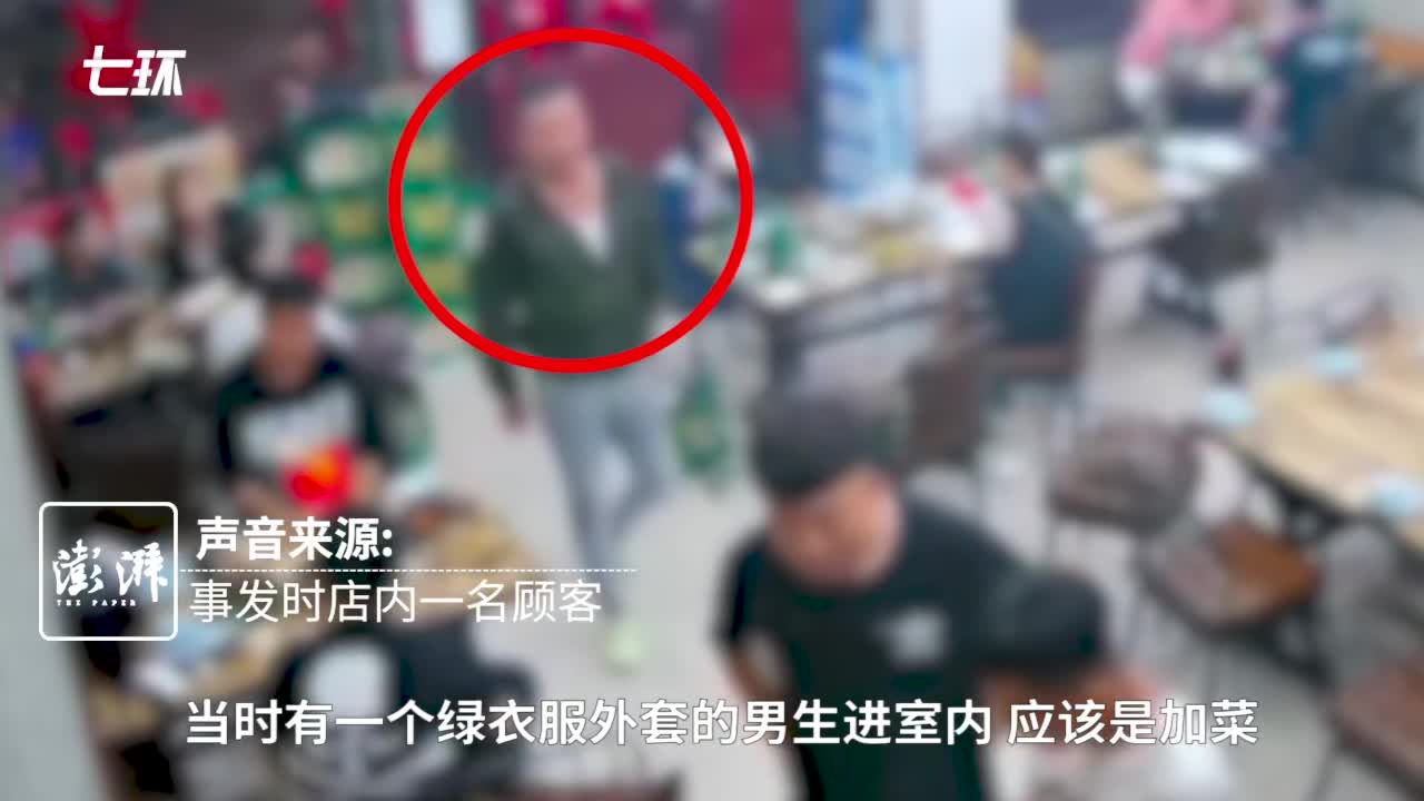 6月11日下午,上游新闻(报料邮箱:cnshangyou@163.com)记者联系到一名现场目击者,对方表示,她当时喝了酒,记忆有点模糊,事发后看了现场视频回忆起,当时绿衣男子进入店内似乎有目的性,“最开始绿衣服男子进到室内,应该是有什么目的,从监控中也能看出来,因为他眼光瞟了那桌的女生,出事之前,对短头发、白色衣服的女子进行了骚扰,做出了恶心的动作。”