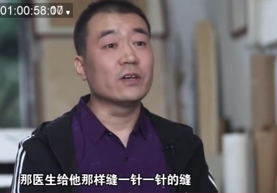 当医生给孩子缝了一针又一针时,他心里特别难受。