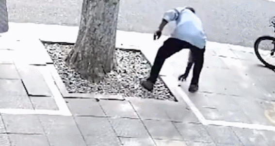 男人杀意大起,一把将自行车推倒。