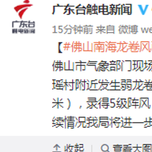 据@佛山天气 消息,根据网友和相关媒体报料,经佛山市气象部门现场初步核实,2022年6月19日07时20分左右,南海区大沥镇雅瑶村附近发生弱龙卷风,尺度小,距离龙卷风最近的雅瑶小学气象站(约200米),录得5级阵风(10.5m/s)。经现场目击者反馈,生命史为1分钟左右。后续情况我局将进一步跟进发布。