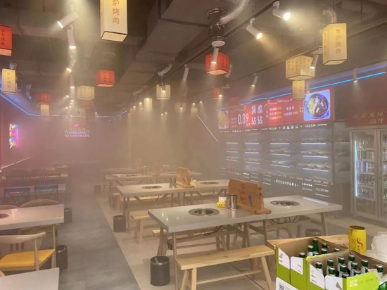 到场后询问得知是厨师操作不当引发油锅起火已被房屋喷淋系统自动扑灭消防员上楼检查已确认无明火由于现场浓烟较大消防员立即架设排烟机进行浓烟处理20分钟后浓烟处理完毕
