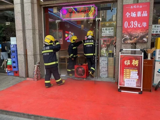2022年5月31日,高陵区一门面房起火,渭华路消防站立即赶赴现场,到场后发现一饭馆2楼冒烟,无明火,据报警人称是油锅造成起火,消防员10分钟后将零星火点全部处理完毕!