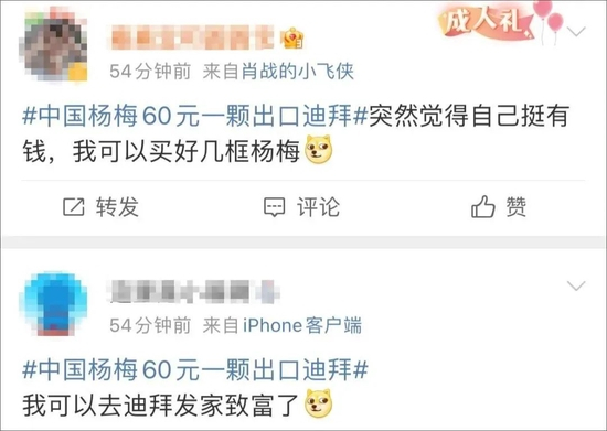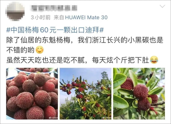 近日,“中国杨梅60元一颗出口迪拜”登上微博热搜,引发网友关注。