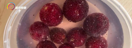 花青素与蛋白质结合会呈现一种令人不愉快的绿色。如果发现有绿色虫子漂浮水中,说明有混有烂掉的杨梅溶出的花青素与死掉的虫体发生了反应,要特别注意。