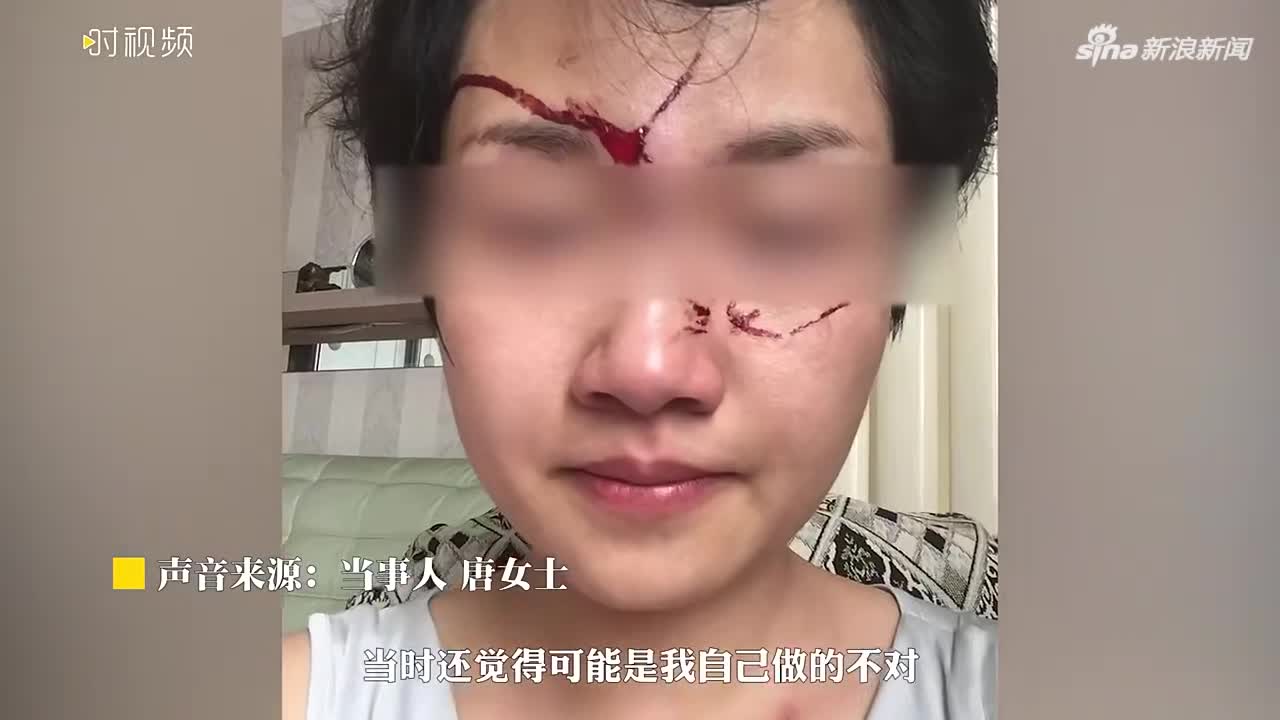 唐萍被家暴后面部受伤缝针