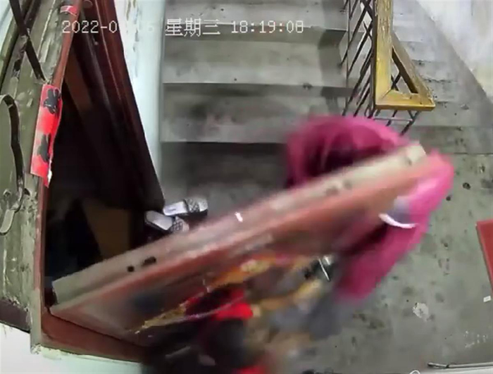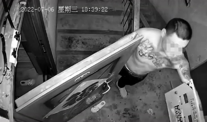 记者注意到,监控视频上显示的时间为2022年7月6日。网传另外一段视频则显示,大约20分钟后,一名打着赤膊身上有纹身的男子打开大门,疑似查看了门口电表,然后重新进屋。