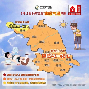 “中暑预警地图”来了!今天江苏最高体感温度将至48℃以上