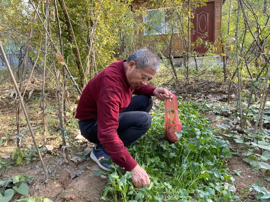 帮忙带可爱小孙女的同时,他们还在门前开辟出了一片小菜地,生活安稳又惬意。