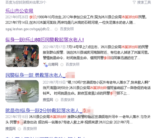 沐川县公安局官网2021年9月曾刊载了一篇关于李某的文章,其中介绍了李某50天内两次“勇救”落水者的事迹。文章提及,李某1986年10月出生,2012年参加公安工作。目前该文已被删除。