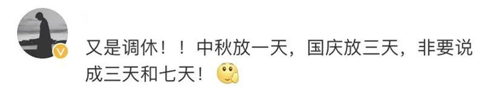 评论称,今年中秋节9月10日至12日放假,共3天,国庆节10月1日至7日放假调休,共7天。通知刚一出,有网友称,“周末本就是休假日,为什么调休”“放假7天,上班7天”“还不如少休2天,别调休”。