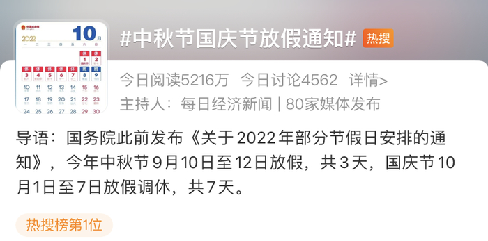 “国庆休7天上7天”冲上热搜!网友:已经感觉到累了