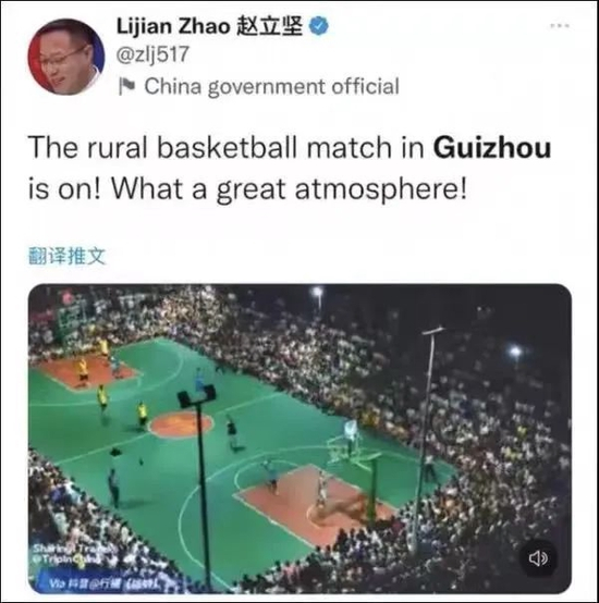这跟家乡浓烈的篮球赛氛围有关。不久前,贵州省黔东南州台江县的一场乡村篮球赛在网上刷屏,网友们惊讶于一场乡村篮球赛竟打出了NBA的气势。外交部发言人赵立坚甚至转发点赞了这条视频。