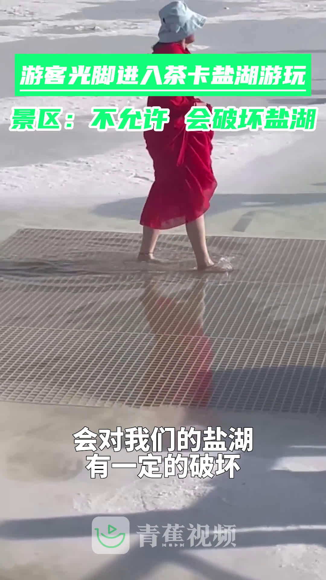 景区回应游客光脚进入茶卡盐湖:会破坏盐湖,进湖需租环保鞋套