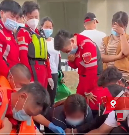 一直焦急等待的母亲情绪崩溃,在亲人和女队员陪伴安抚下,继续等待孩子的消息。10公里、20公里、30公里……随着搜寻范围的逐步扩大,8月10日,救援队终于在落水点下游30多公里处,找到了孩子的遗体。