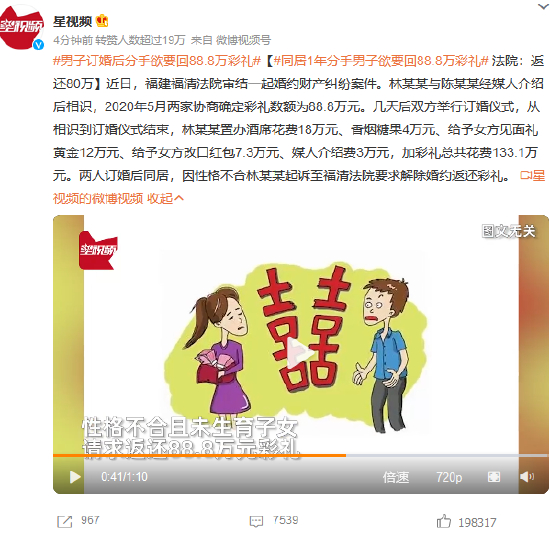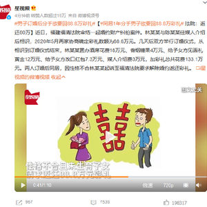 同居1年分手男子欲要回88.8万彩礼 法院:返还80万